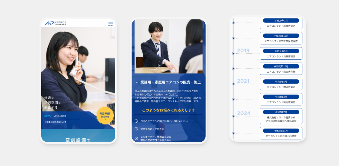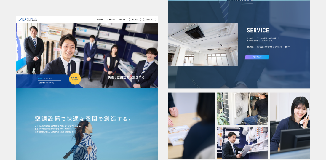 業務用・家庭用エアコンの販売・施工店「エアコンランド」を首都圏に展開するアプロス株式会社。社名の変更・リブランディングに伴いコーポレートサイトをリニューアルしました。